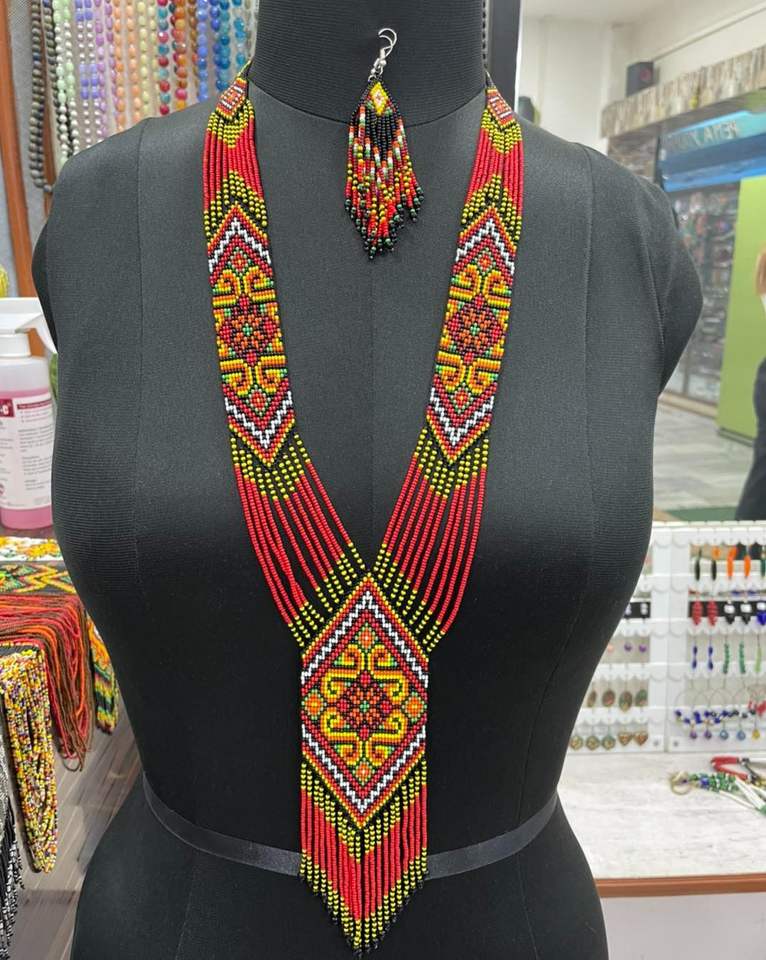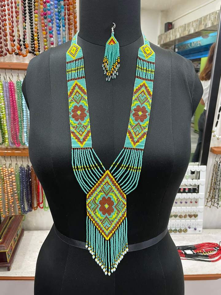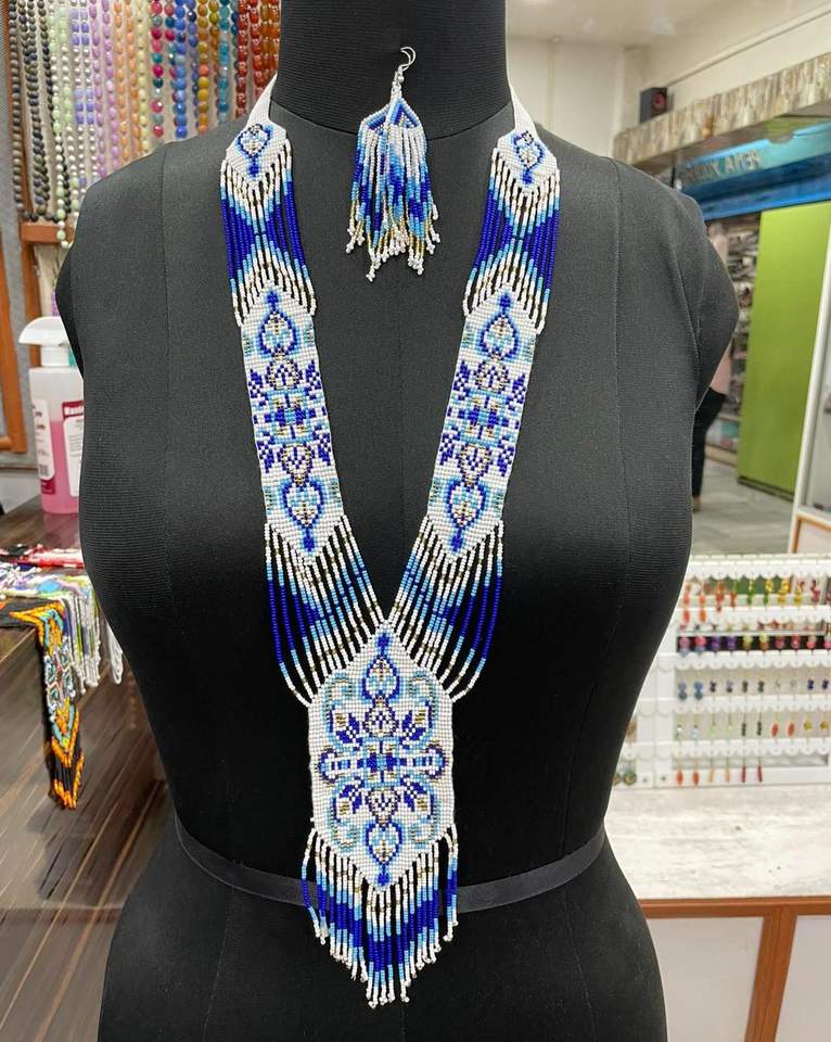 Custom Made Glass Seed Beaded Necklaces with Patterns Along with Matching Earrings Ideal for Jewelry Designers