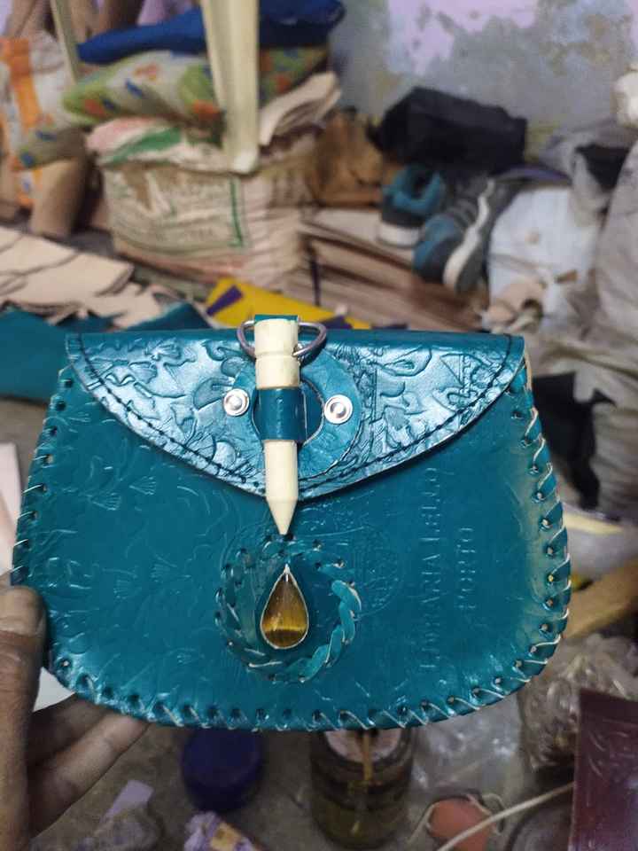 Custom Made Hand Carved Leather Sling Bags and Purses Fitted with Real Gemstones Suitable for Vintage Theme Stores for Resale