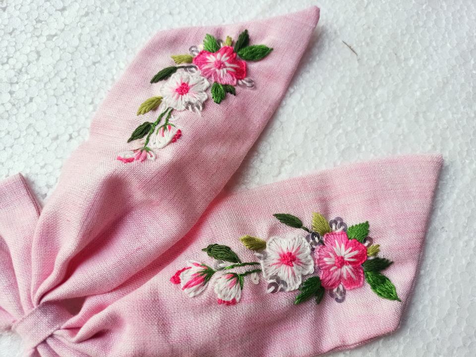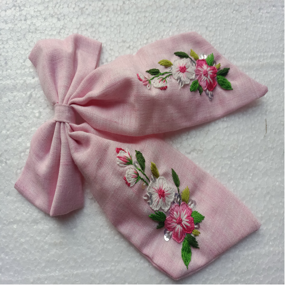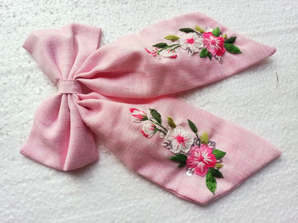 Custom Made Hand Embroidered Linen Bows Ideal for Childrens Clothing Designs and Hair Accessory Designers
