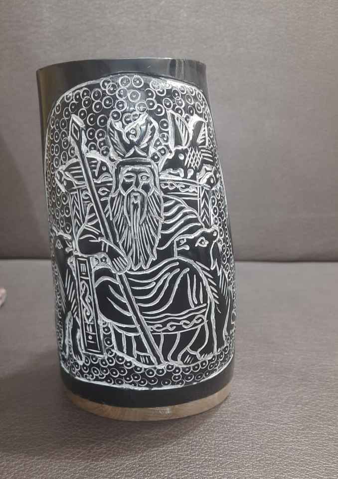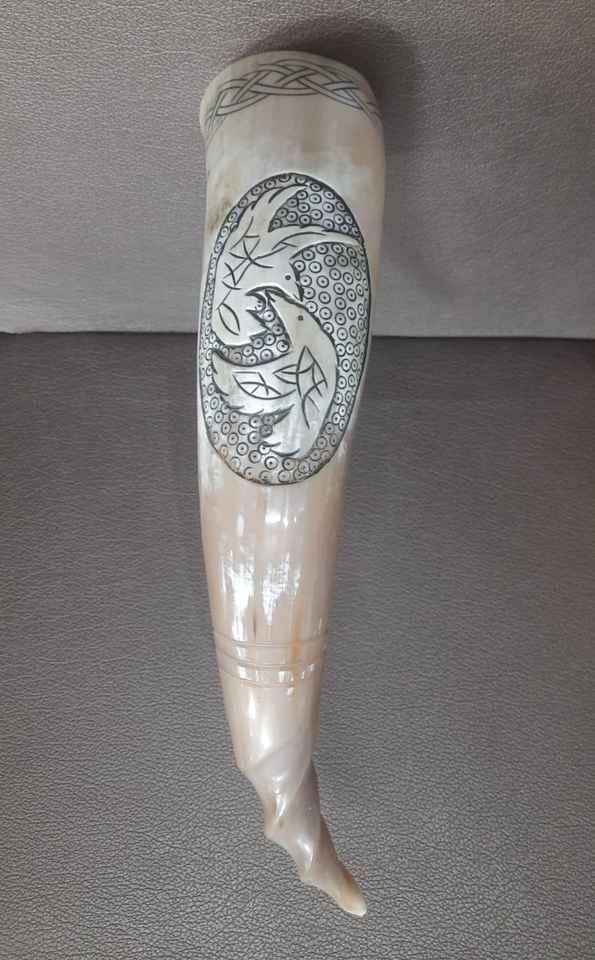 Custom Made in Dragon Design Hand Carved Drinking Horn Mug With Intricate Viking Theme Carvings for Mead and Viking Supply Store