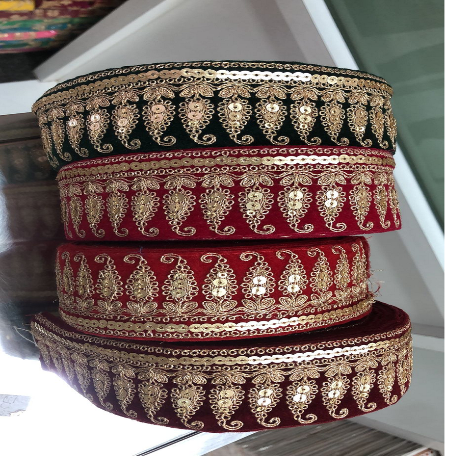 Custom Made in Paisley Designed Embroidered in Four Colour Ways in Ethnic Designs for Various Purposes in 2.5 Inch Width.