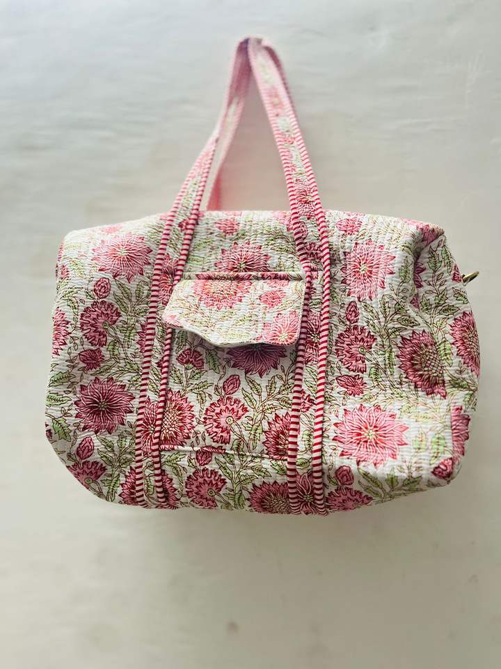 Custom Made in Three Assorted Designed Hand Embroidered Kantha Quilted Shopping Bags Made From Cotton Block Printed Fabrics.