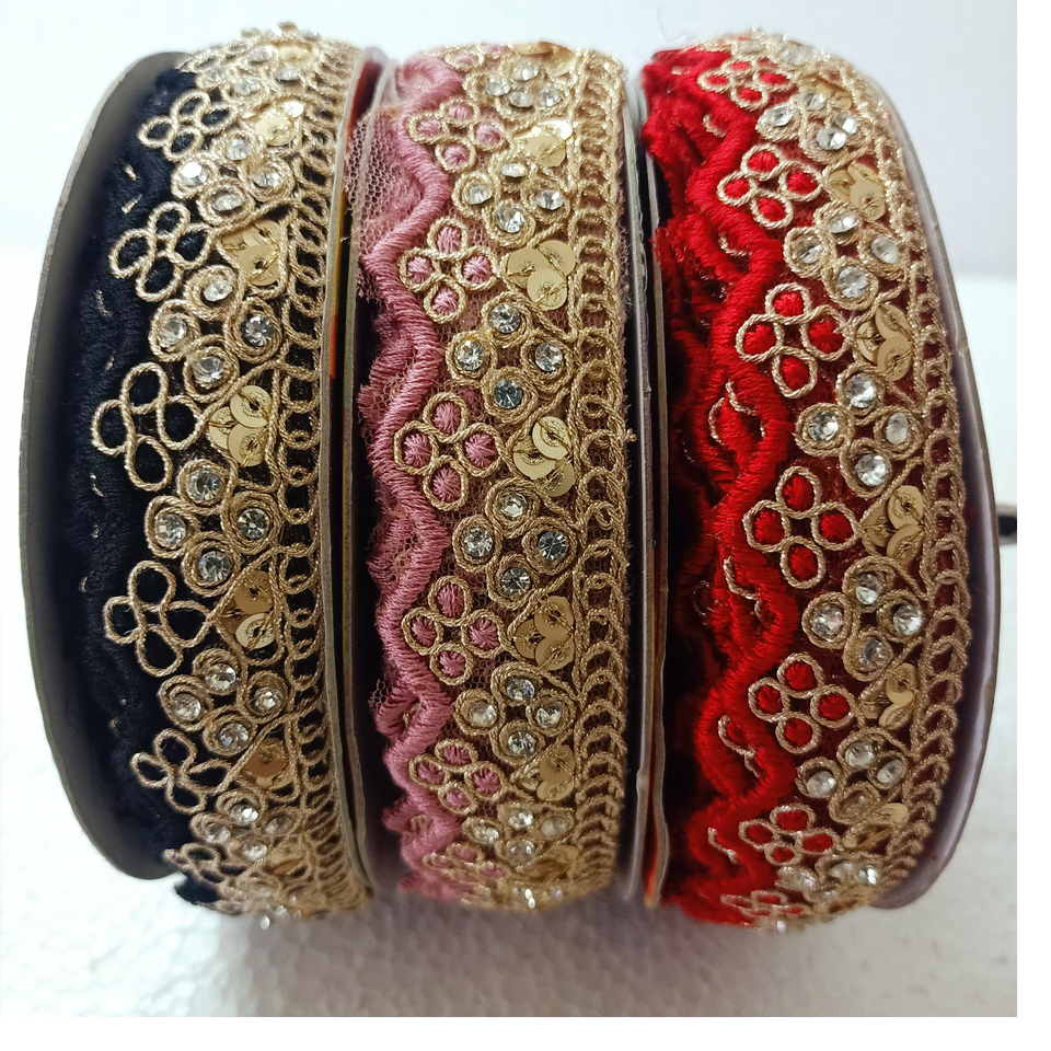 Custom Made Machine Embroidered Ribbons & Laces in Various Designs & Colours for Wedding Dresses in 1.5 Inch