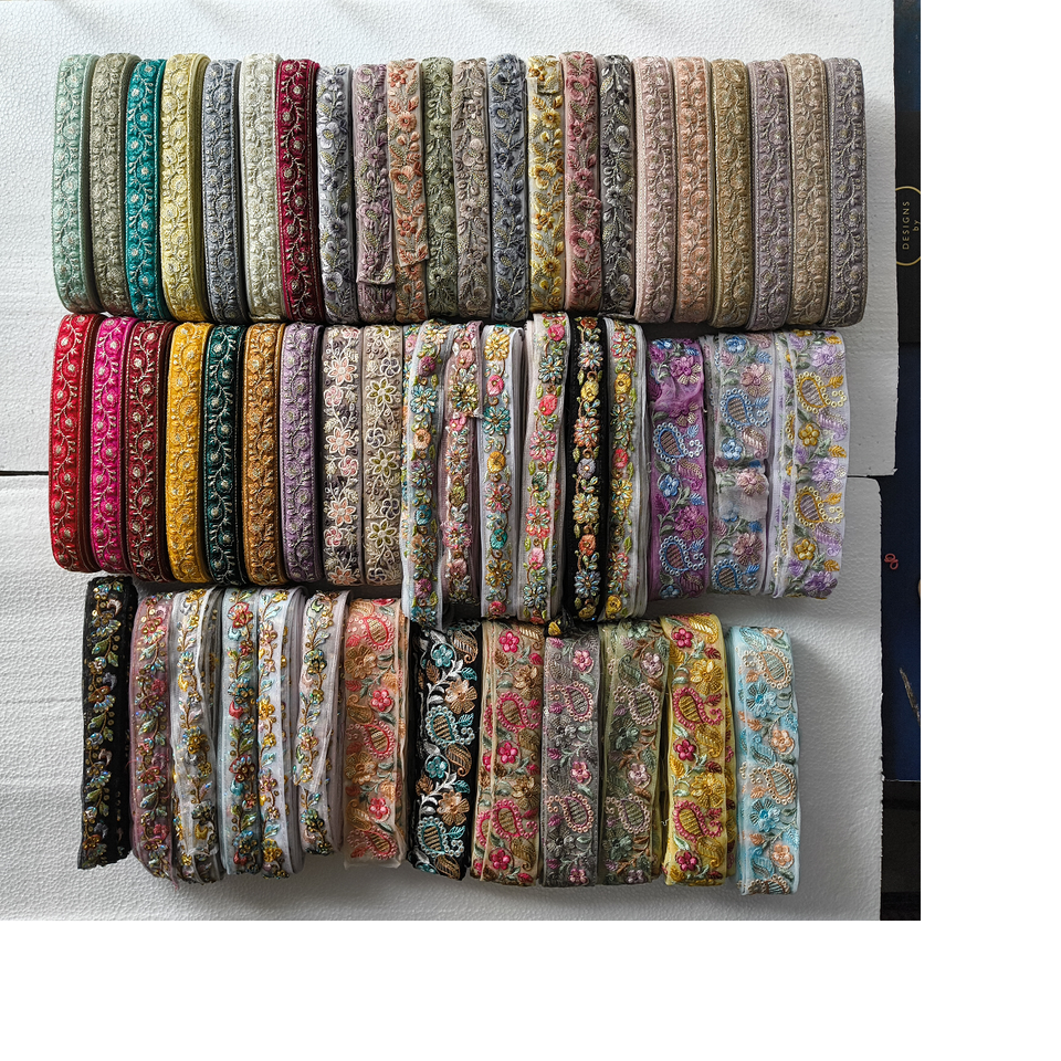 Custom Made Machine Embroidered Ribbons & Laces in Various Designs & Colours for Wedding Dresses Mostly in 1 Inch.