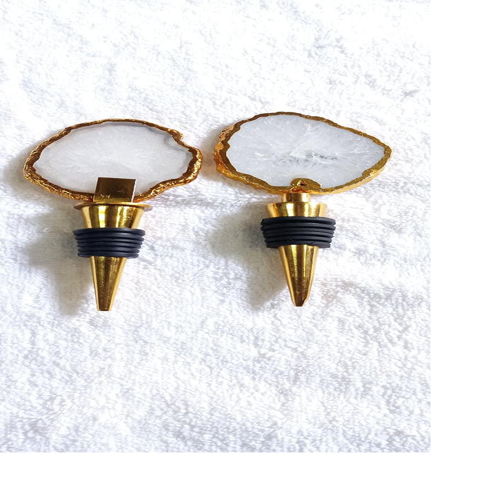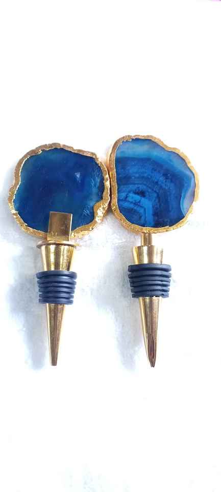 Custom Made Royal Blue Coloured Stone Agate Wine Bottle Stoppers , champagne Bottle Stoppers Made From Real Agate Gemstones