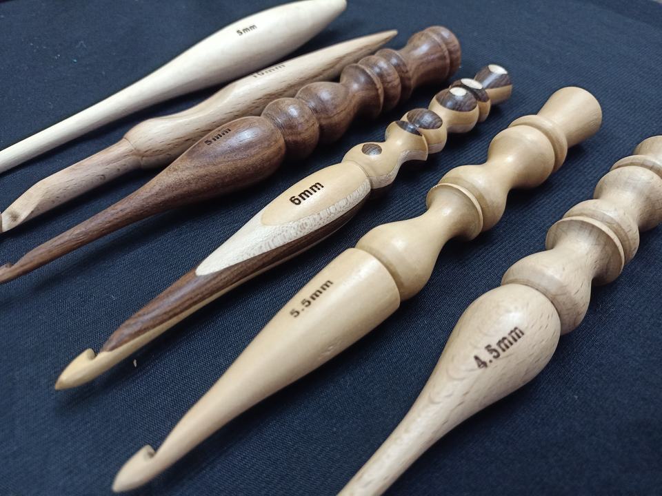 Custom Made Wooden Crochet Hooks Made From Multi Wood with US Size Engraved Suitable for Knitting Supply Stores