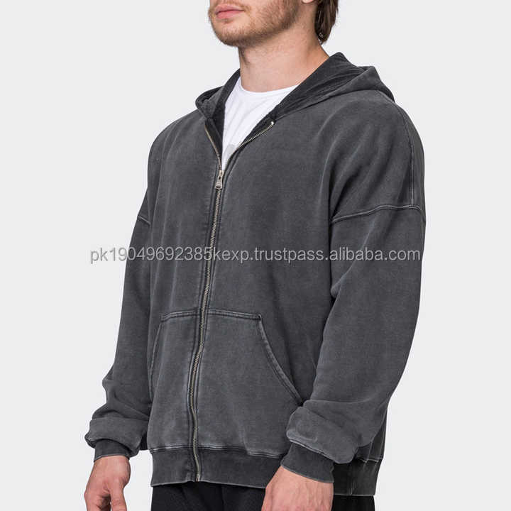 custom men's cotton oversize drop shoulder zip up hoodies streetwear vintage acid wash heavyweight blank zip hoodie for men