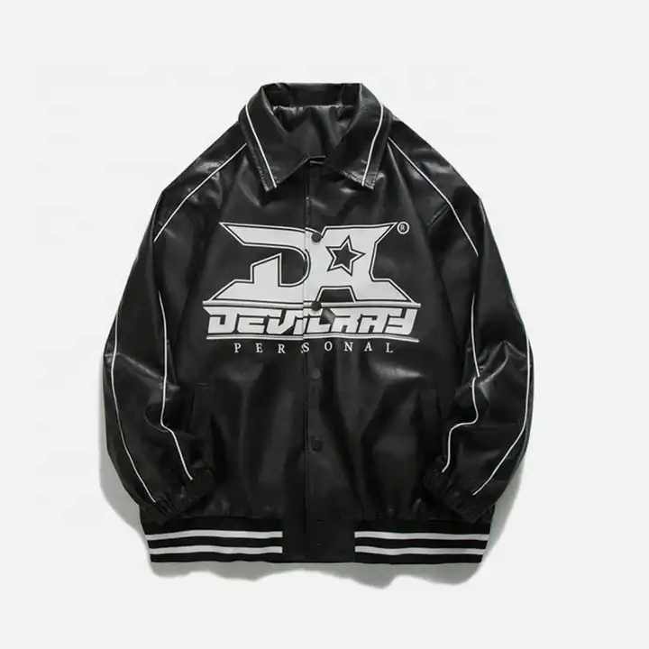 High Quality Retro American PU Leather Baseball Jacket Custom Color Embroidery Letterman Varsity Design Stand High Street Winter