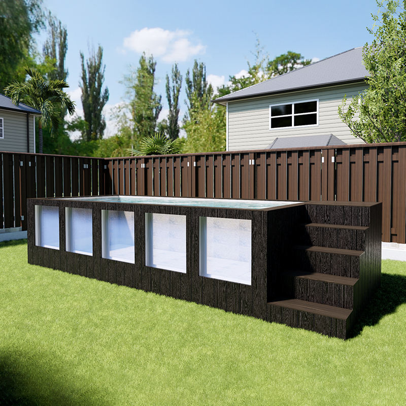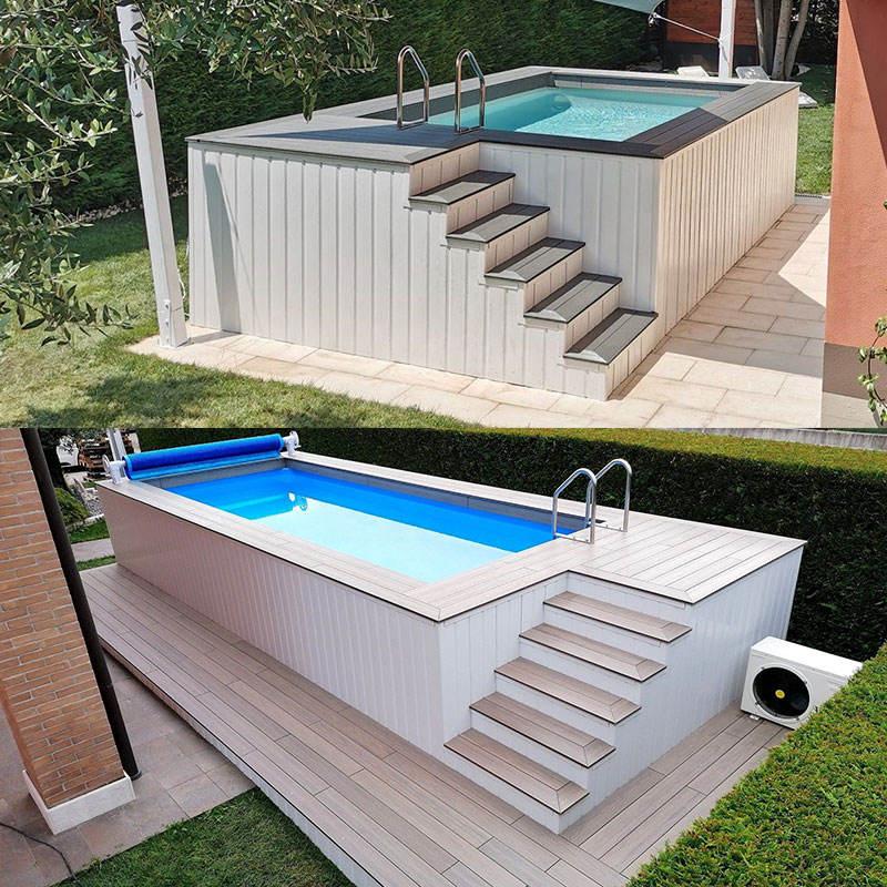 custom wooden deck above ground swimming pool contain 20ft large size backyard swim spa outdoor fiberglass pool for sale