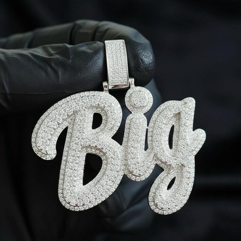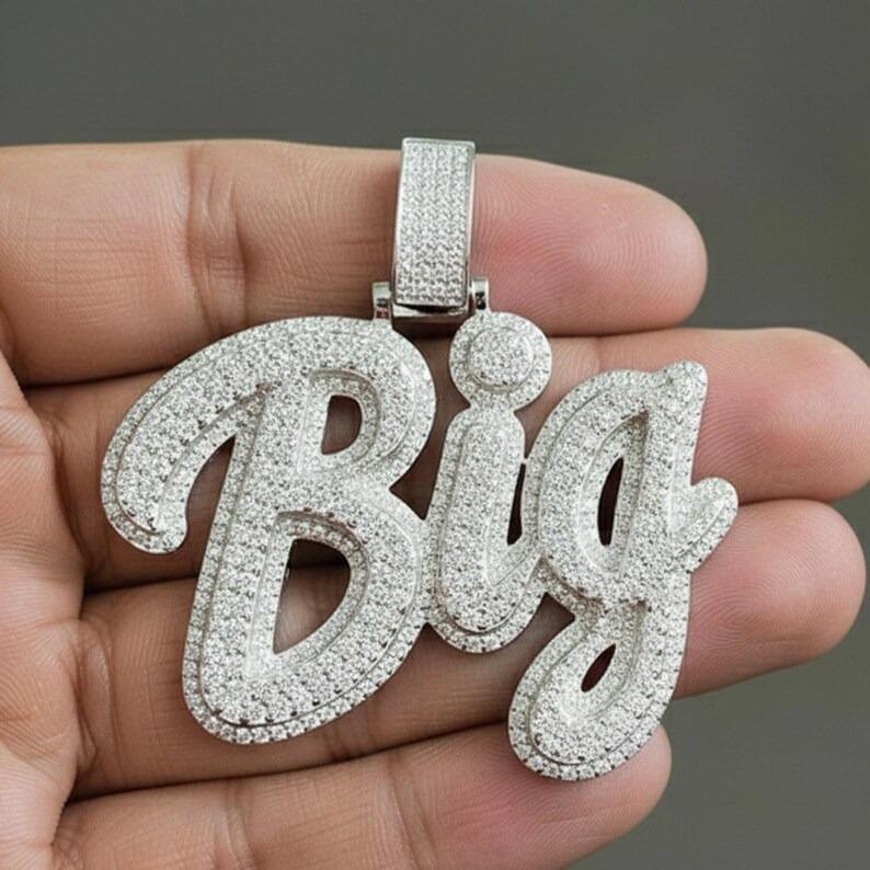Customized Big Name Moissanite Freshwater Pearl Pendant Necklace in 925 Sterling Silver | Iced Script Hip Hop Jewelry Men's