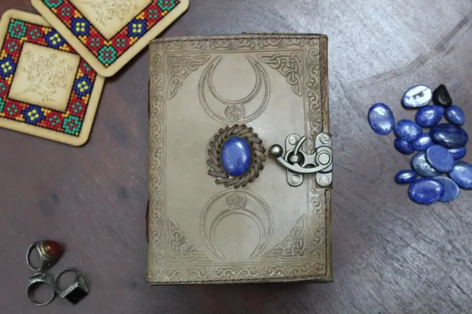 customized crystals book Embossed Leather Journals Gemstones Wiccan And Occult Themes Made Using Old Look Edges Papers