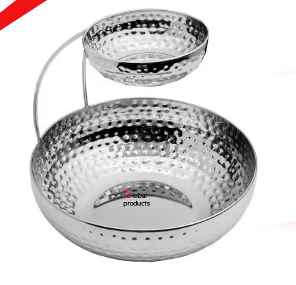decorative golden finished metal stainless steel tabletop decorative chip and dip serving bowl for hotel restaurant and bar