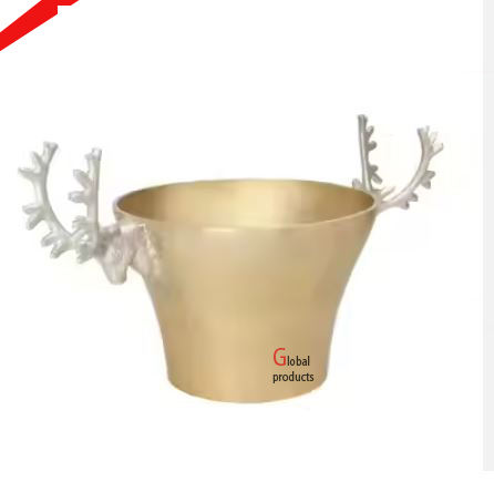 decorative golden finished metal wine cooler ice bucket with silver deer head design for hotel restaurant and bar
