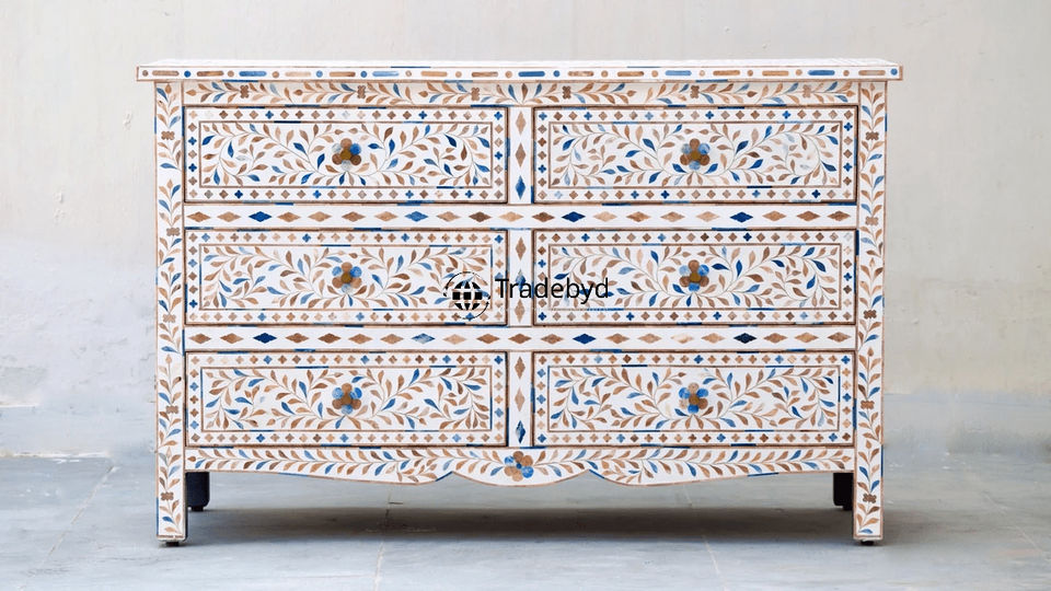 Modern Design Wooden Cabinet Handcrafted Chest with Decorative Bone Inlay for Stylish Storage for Home School or Apartment