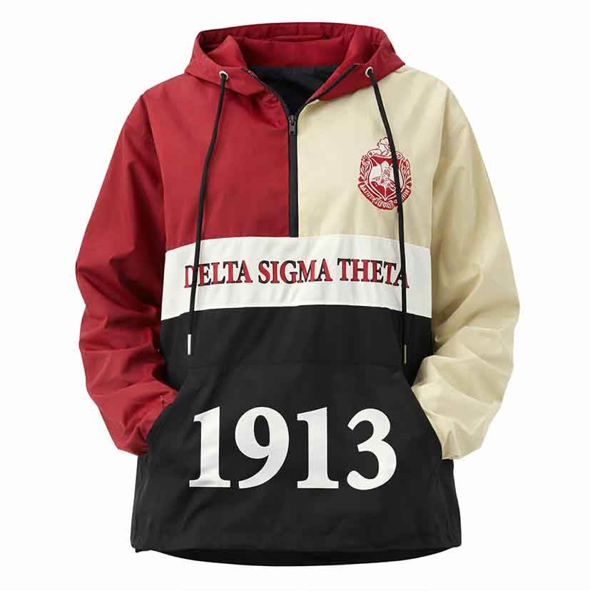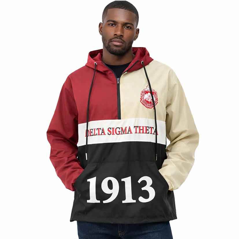 delta/sigma/theta greek twill letters quarter zipper Windbreaker hood line coaches Jackets 1913 New Design Rain Jackets