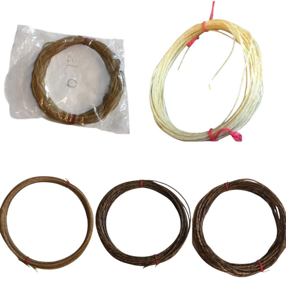displays drum gut cords. appears to be a furled tapered ten fly fishing line (0.70mm, 1mm, 1.40mm, 2mm, 3mm)