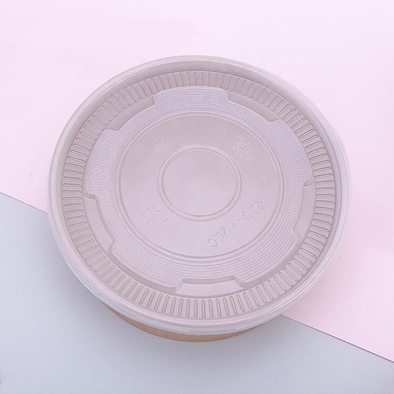 Disposable Kraft Paper Soup Bowl with Lid for Cookie Salad Sugar Snack Milk Hamburger Elegant Embossing Print Handling