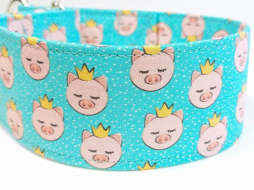 dog pigs with crown, fabric greyhound collar, cyan martingale or buckle, whippet collar / celebrity