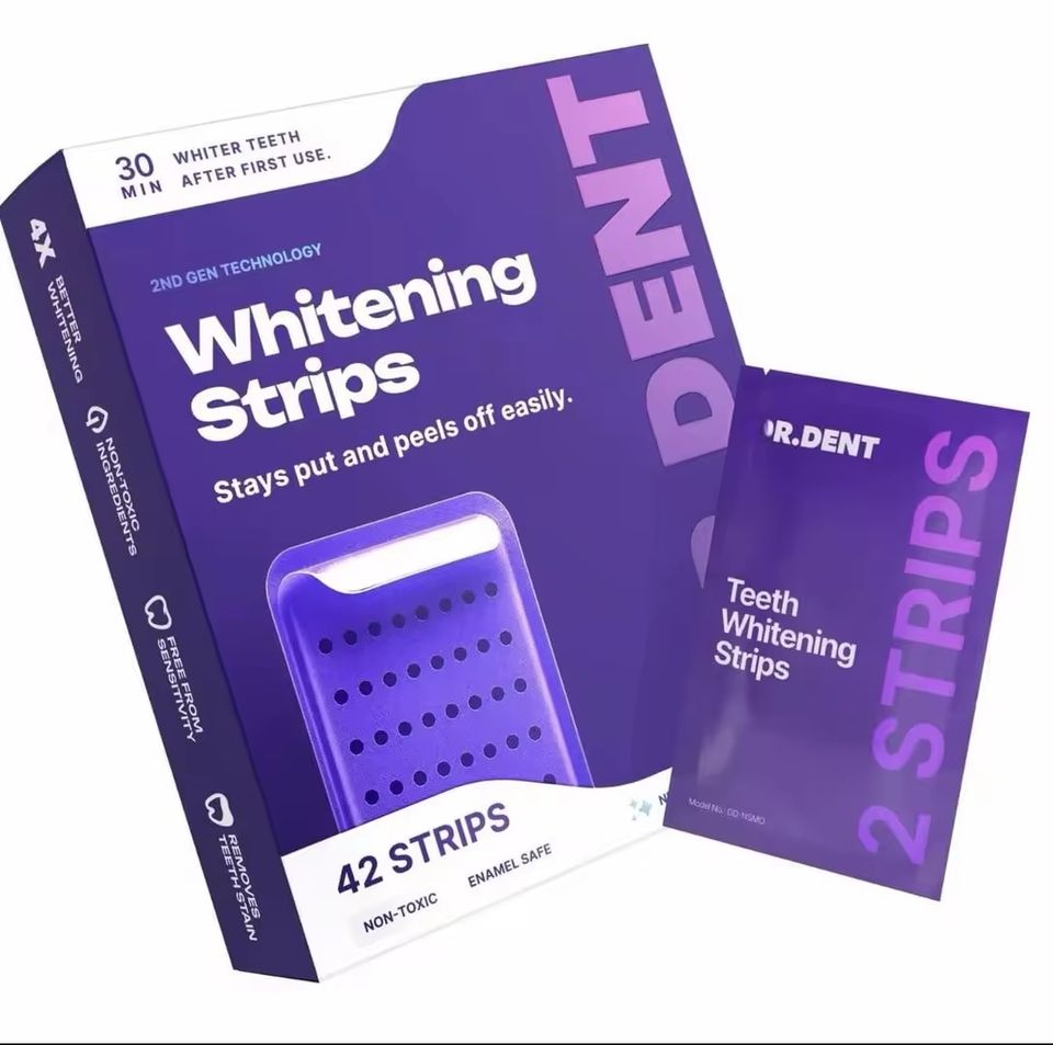 Dr Dent Purple Teeth Whitening Dental Strips Protect Enamel Layer 14/42 Strips Floral Fragrance Emulsion Material