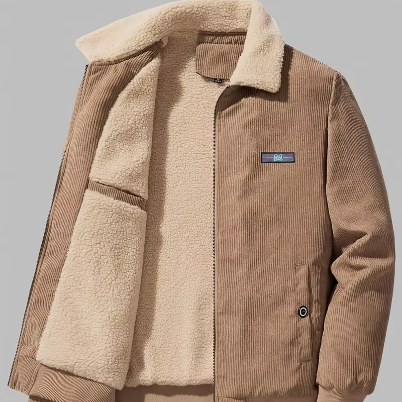 dropshipping Men's Casual Warm Padded Jacket with Fleece Lining, Water-Resistant, Perfect for Outdoor Activities