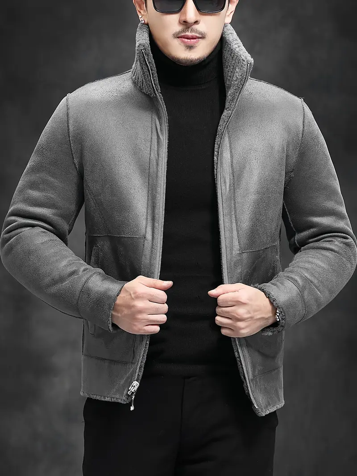 dropshipping Resistant Men's Faux Fur Jacket | 7.0% Wool 93.0% Polyester, Solid Color, Stand Collar, Zipper Closure