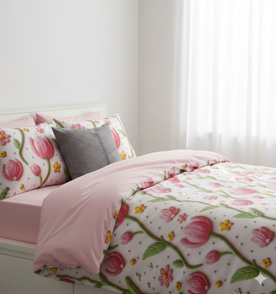 E Flat Sheet 2 Pillow Cases 3-Piece Set 100% Cotton Durable Printed Plant Pattern Modern Fade/Wrinkle Resistant Luxury