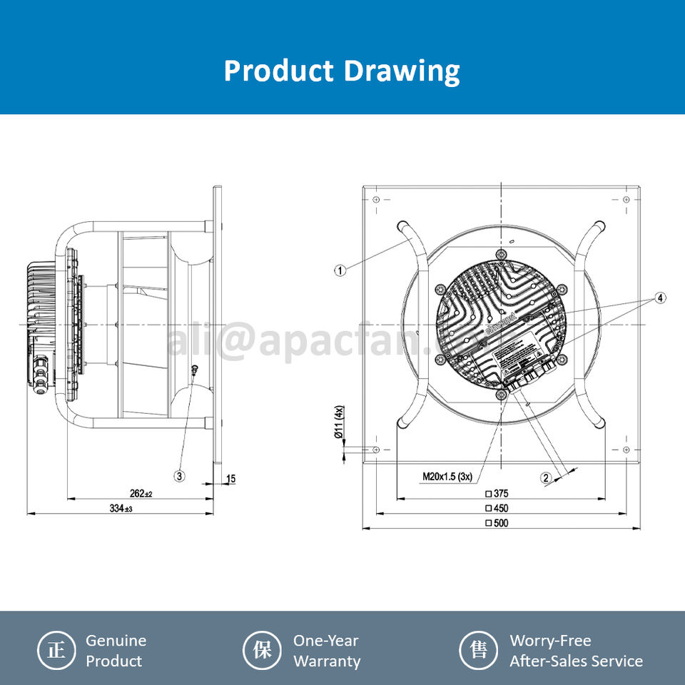 ebmpapst K3G310-AZ88-02 400VAC 3240W 4100RPM 4.9A 4025m3/h Track Auxiliary Converter Centrifugal Cooling Fan K3G310-PV69-03/F01