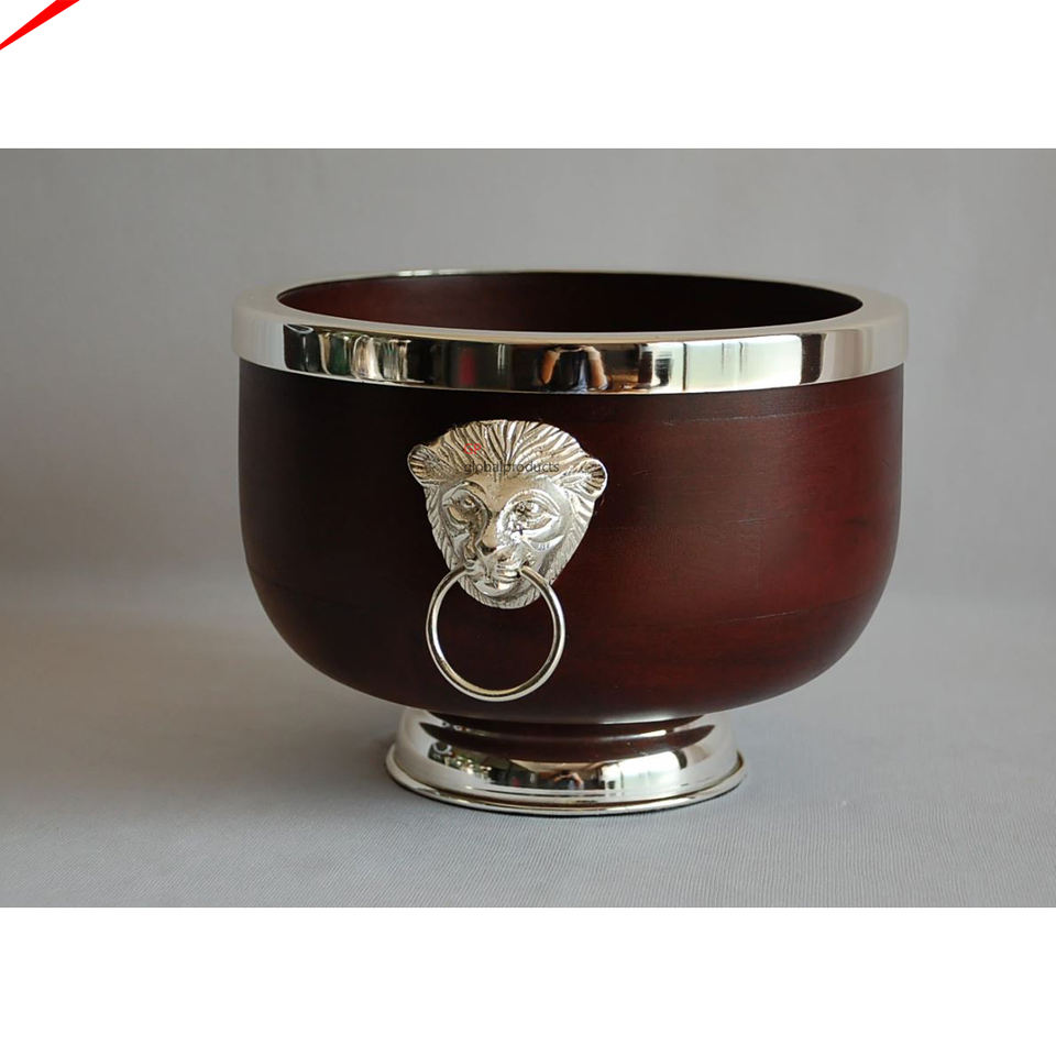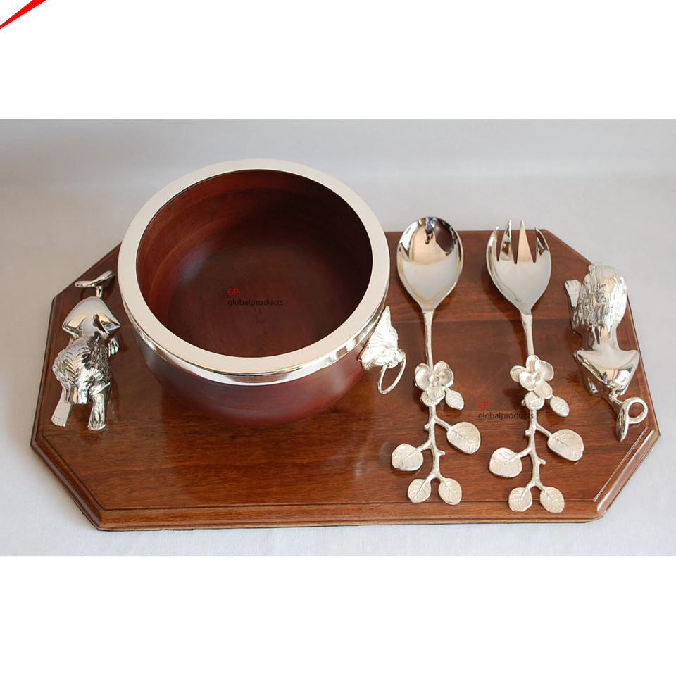 Eco Friendly Design Wooden Round Serving Bowls with Decorative Handles and Tray Decorative Salad Dessert Serving Bowl