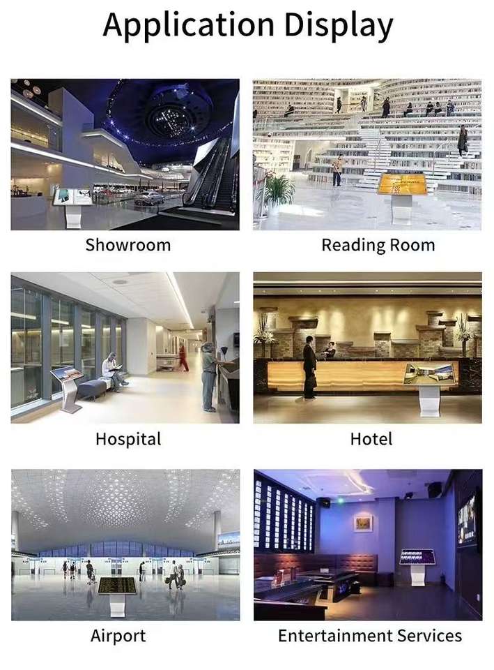 use:Advertising Publish, Airport, Display Of Dishes, Education, Elevator, Exhibition Hall, Medical Treatment, Restaurant & Hotel Supplies, Retail Store, Self-Service Business, Shopping Mall, Subway, Wayfinding, Welcome Display