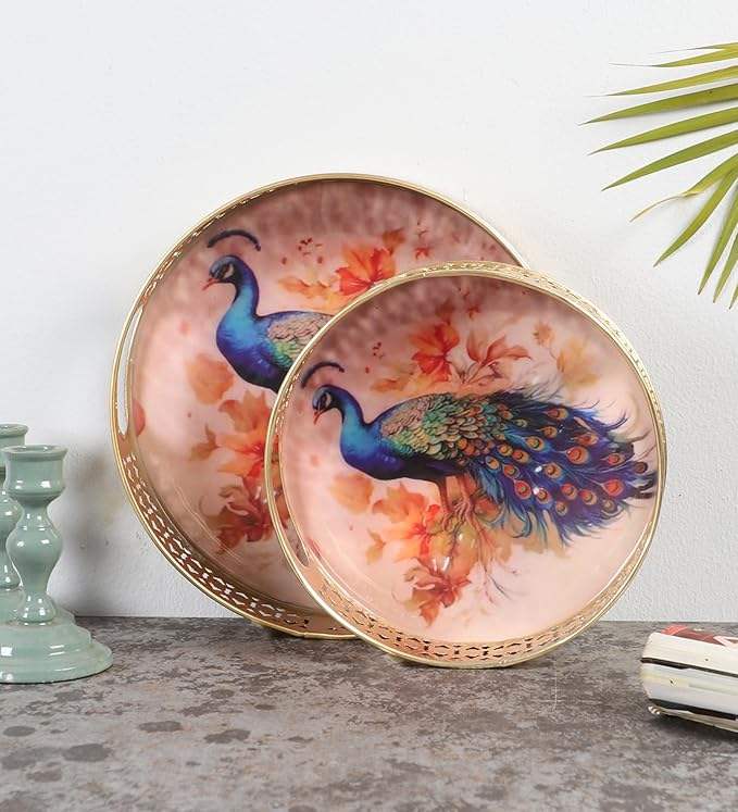 elegant copper printed serving tray with detailed artwork copper printed serving tray with fusion contemporary prints low price