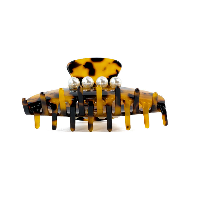 elegant simple custom hair claw embed white pearls tortoiseshell acetate claw clip high quality wholesale hair accessories