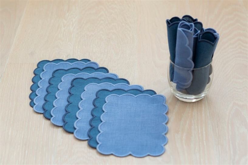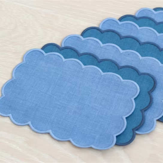 Custom Handmade Embroidered Scalloped Cotton Linen Modern Placemats Cocktail Napkins Wedding Decor Dinner Cloth Accessories