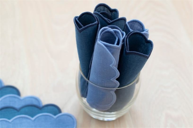 Cotton linen embroidered edge scalloped napkin
