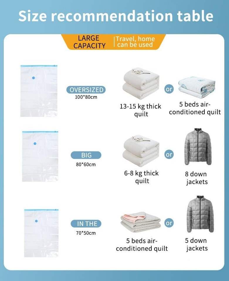 Generic-Space Saver Foldable Vacuum Storage Bags-80% Space Saving-Multiple Sizes-Thickened Material-Double
