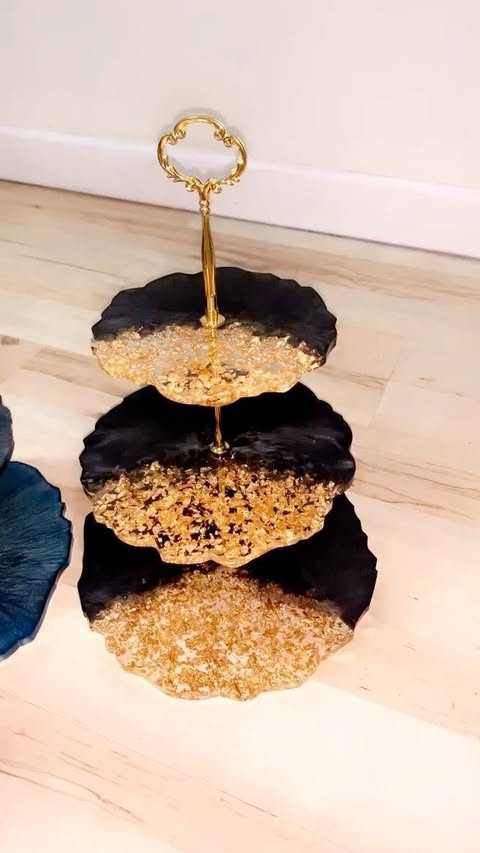 epoxy resin cake stand with three tier multilevel cake trays in customized colors latest unique design cake stand for home decor