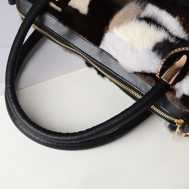 ew Autumn-winter Faux Mink Fur Hand-held Crossbody Bag with Strap for Carrying Under