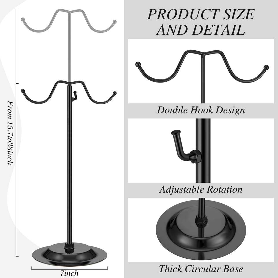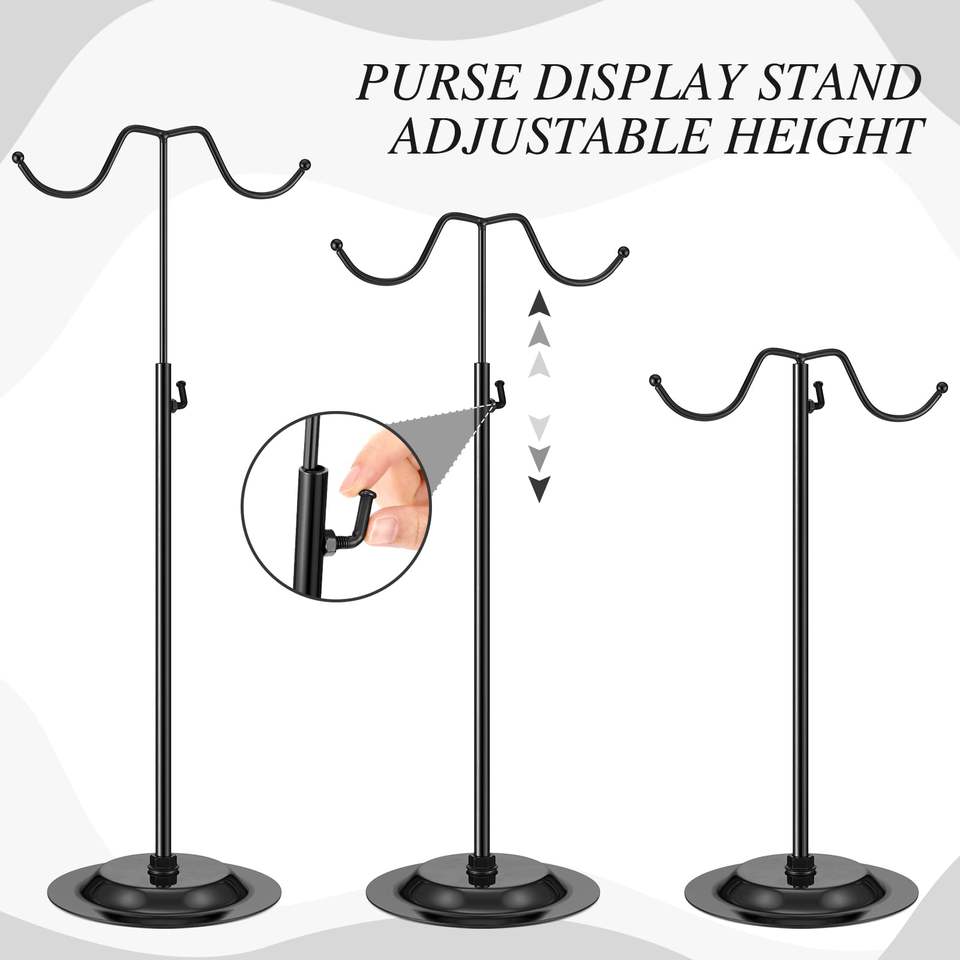 Boutique Display Rack for Handbags, Adjustable Metal Double Hook Stand with Black Coating