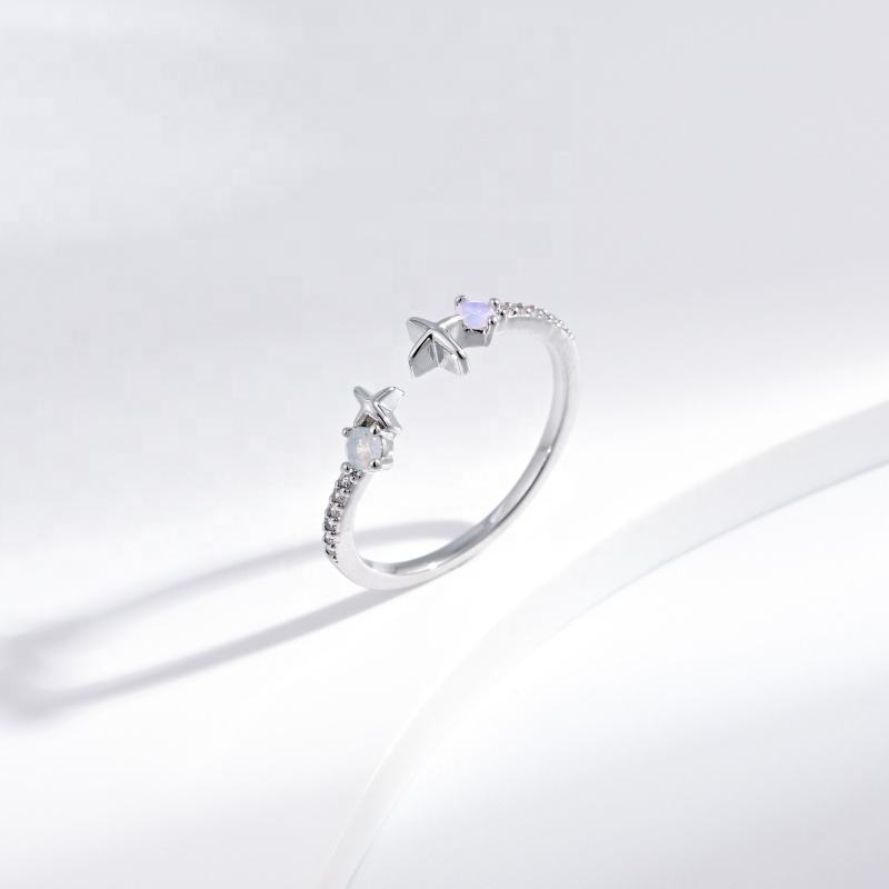 factory price plata 925 silver opal cheap open adjustable ring wholesale butterfly gold plated simple gemstone rings for girls