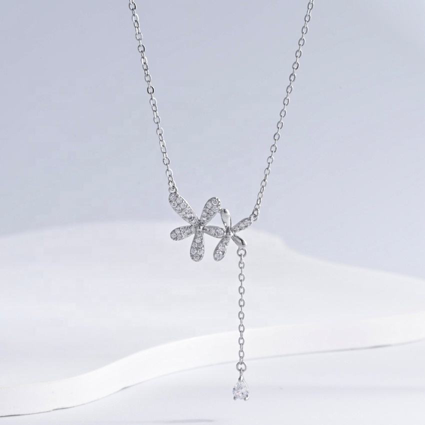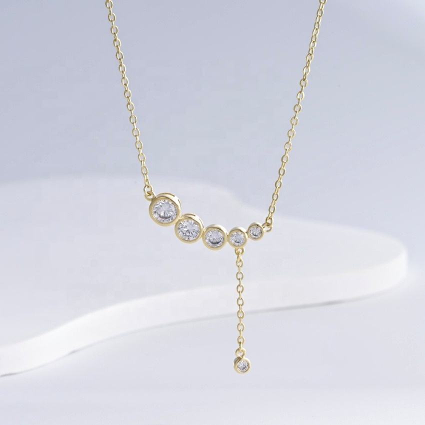 factory price plata 925 silver unique water drop necklace luxury star zircon gold plated geometric women dainty tassel necklaces