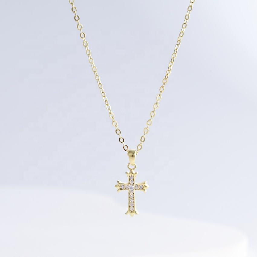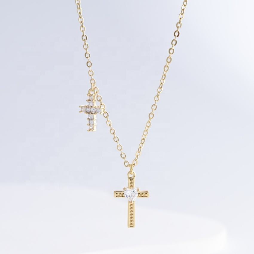 factory price plata 925 sterling silver cross pendant necklace gold plated hip hop zirconia heart simple women fashion necklaces
