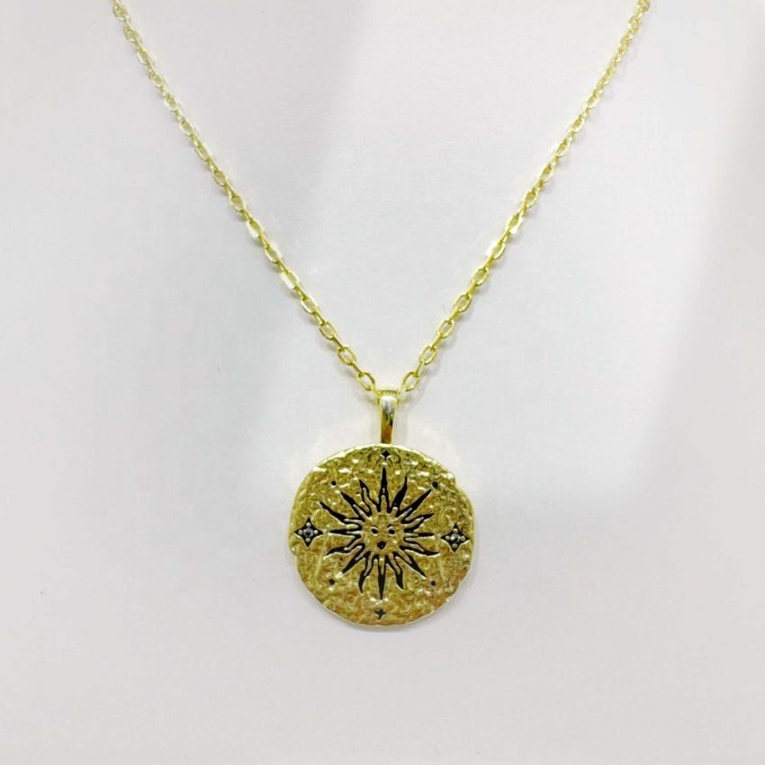 factory price plata 925 sterling silver unique fashion pendant necklaces hip hop girls gold plated letter engraved coin necklace