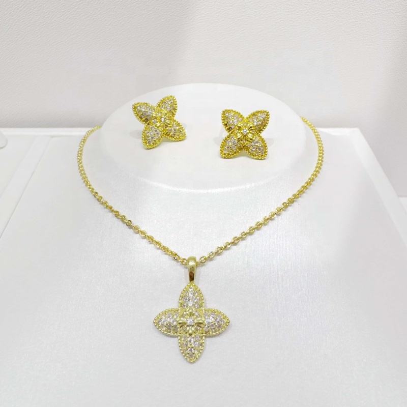 factory price plata 925 sterling silver women geometric set high quality zircon gold plated earring and necklace jewelry sets