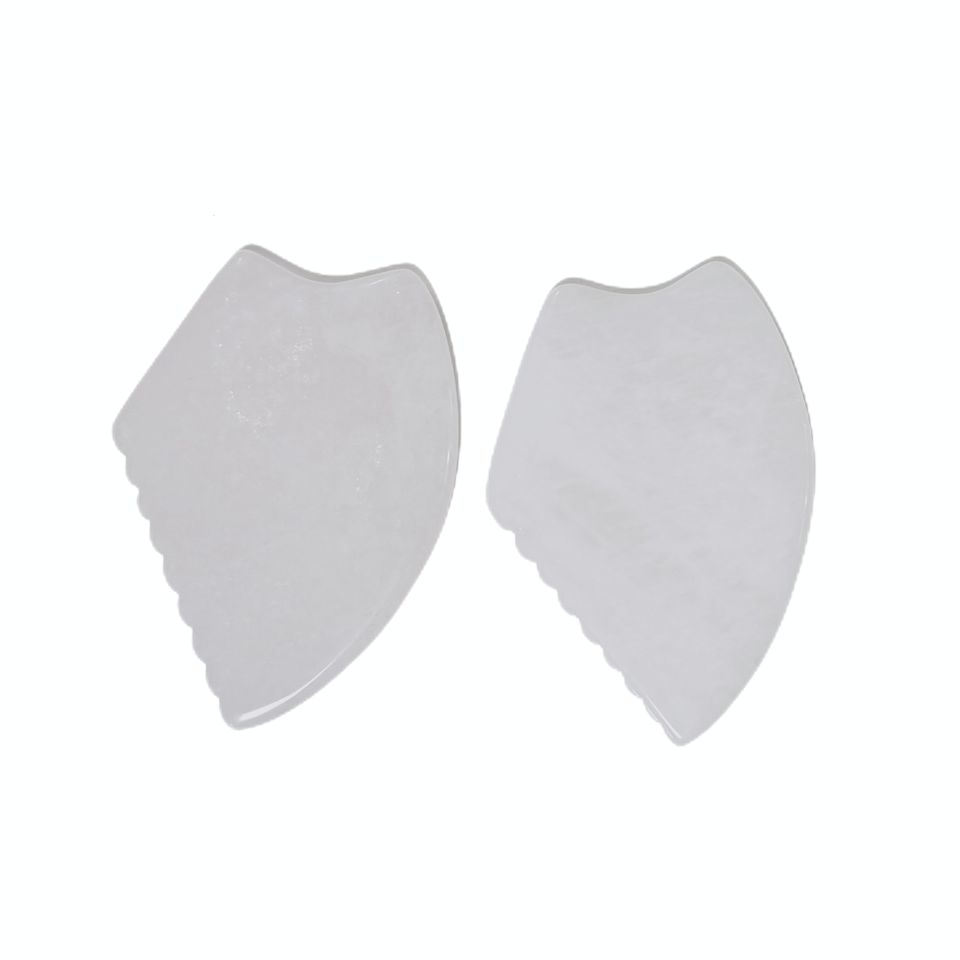Name:fan shaped white jade natural stone scraping tools with teeth