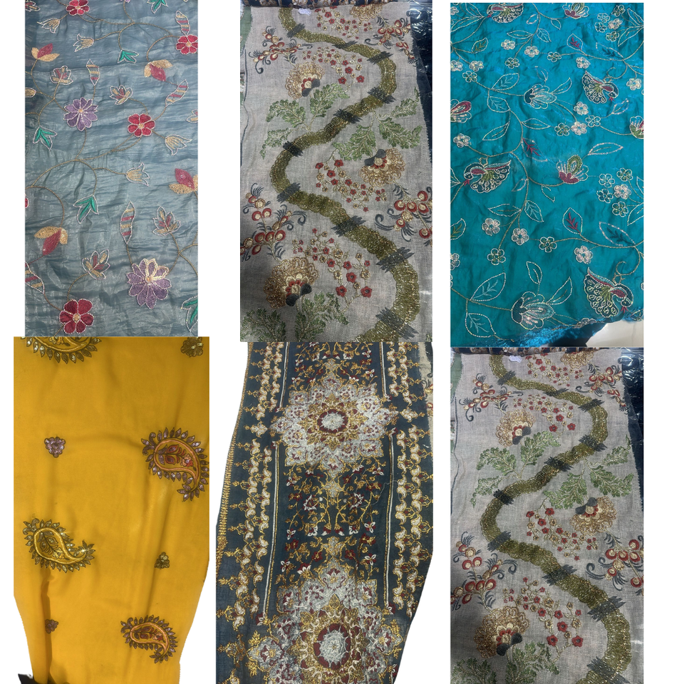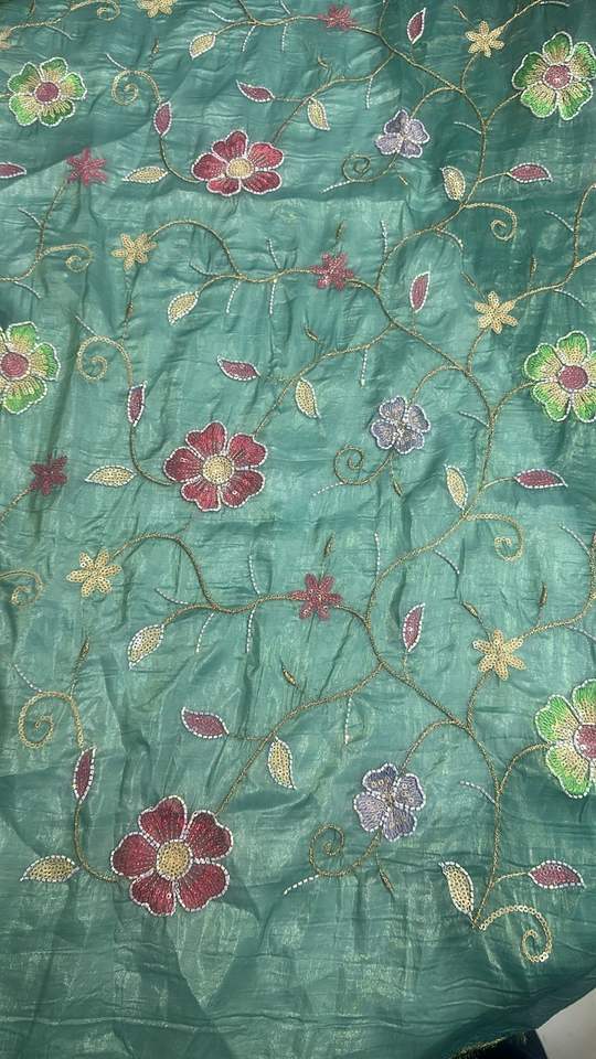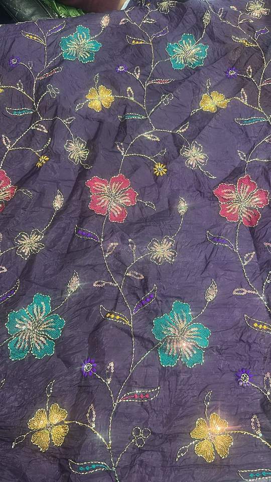 fancy silk position print with embroidery make to fancy dress , saree best quality fabric