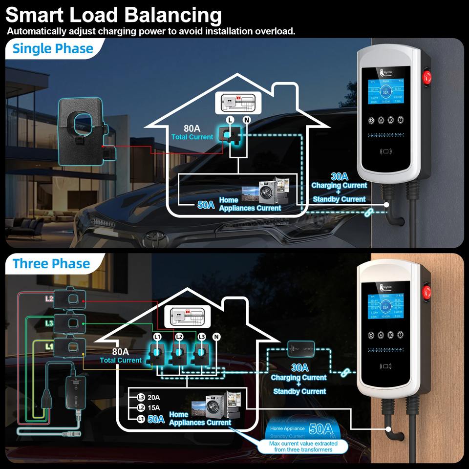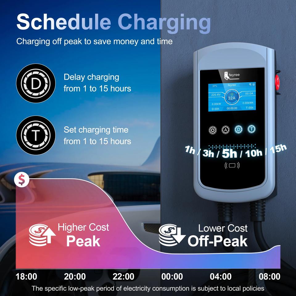 feyree 12kW Single Phase Wall mounted EV Charger NACS 264V Smart DLB Fast Electric Car Charging Station Adjustable 50A with Rfid