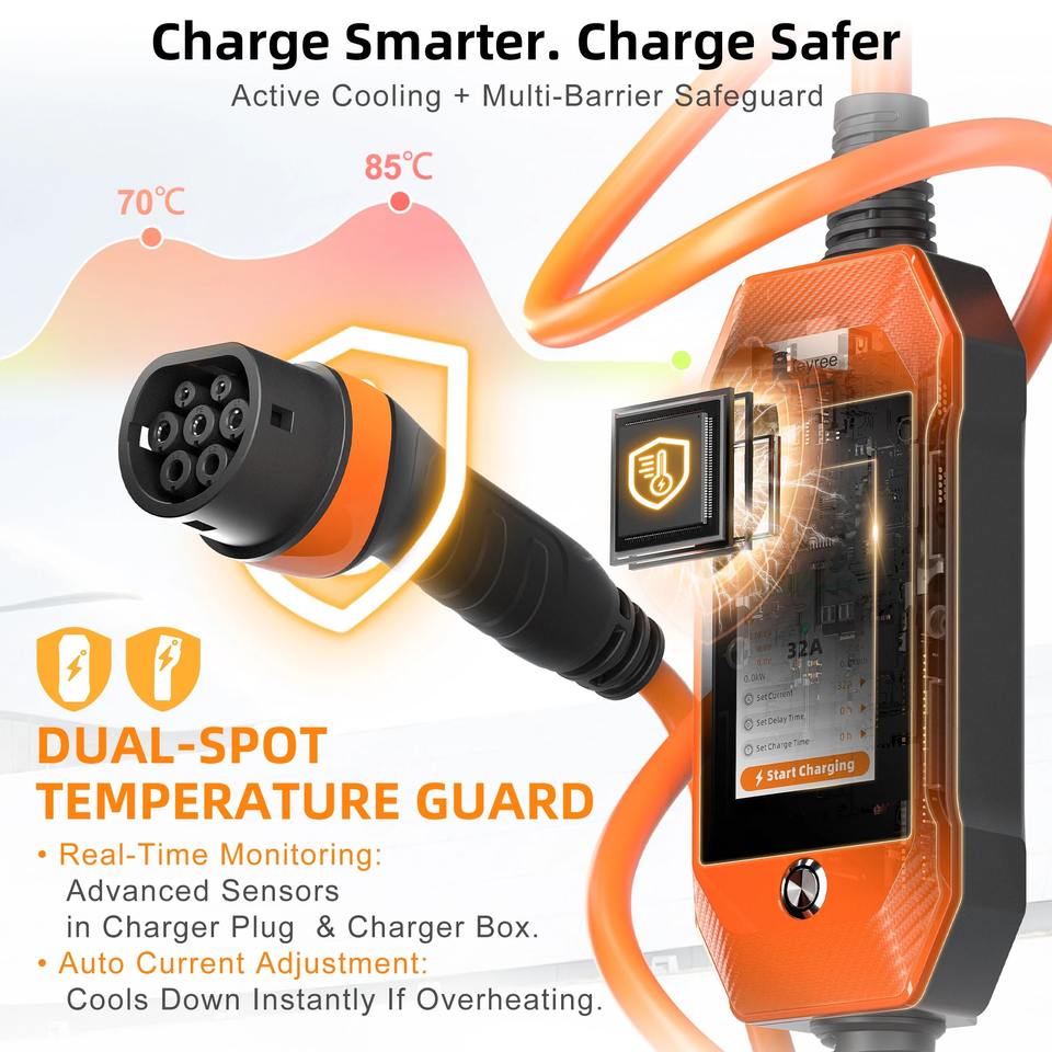feyree 7kW 1 Phase Portable EV Charger Type 2 32A EV Charger for 4.3 Inch Smart Touch Screen 85V-264V with OTA Firmware Upgrades