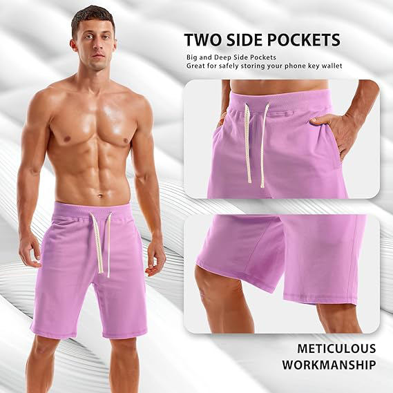 fleece shorts men casual soft cotton fabric elastic waist relaxed fit gym lounge summer wear