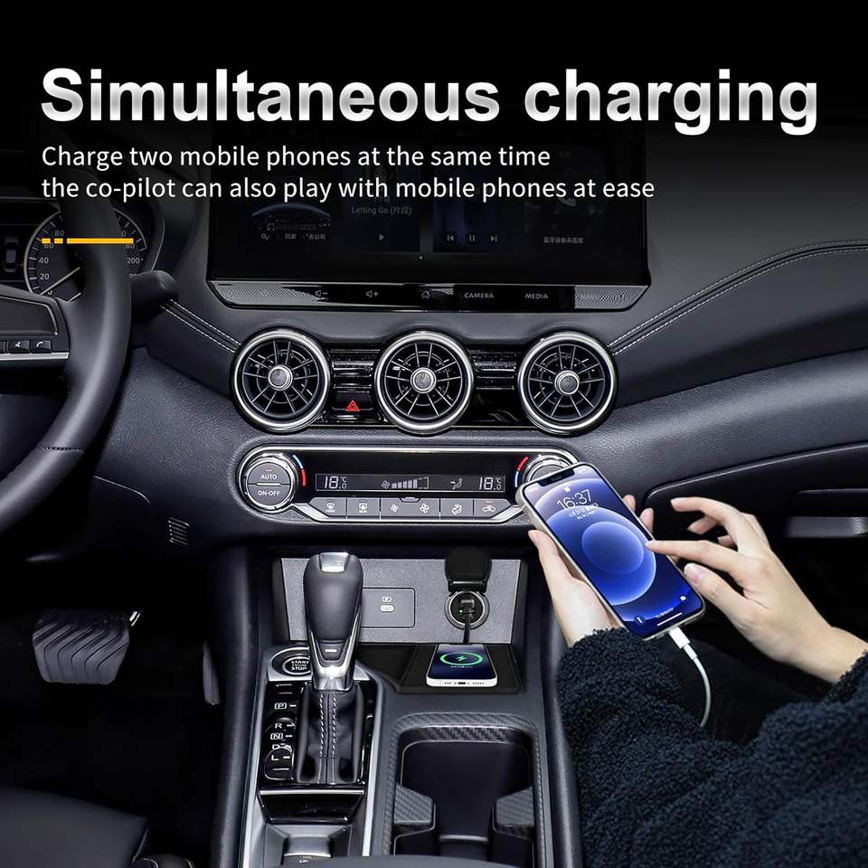 for Nissan Sylphy/Sentra 2020 2021 2022 2023 Wireless Phone Charging Pad Silicone Material Dual Charging Ports Charger Station