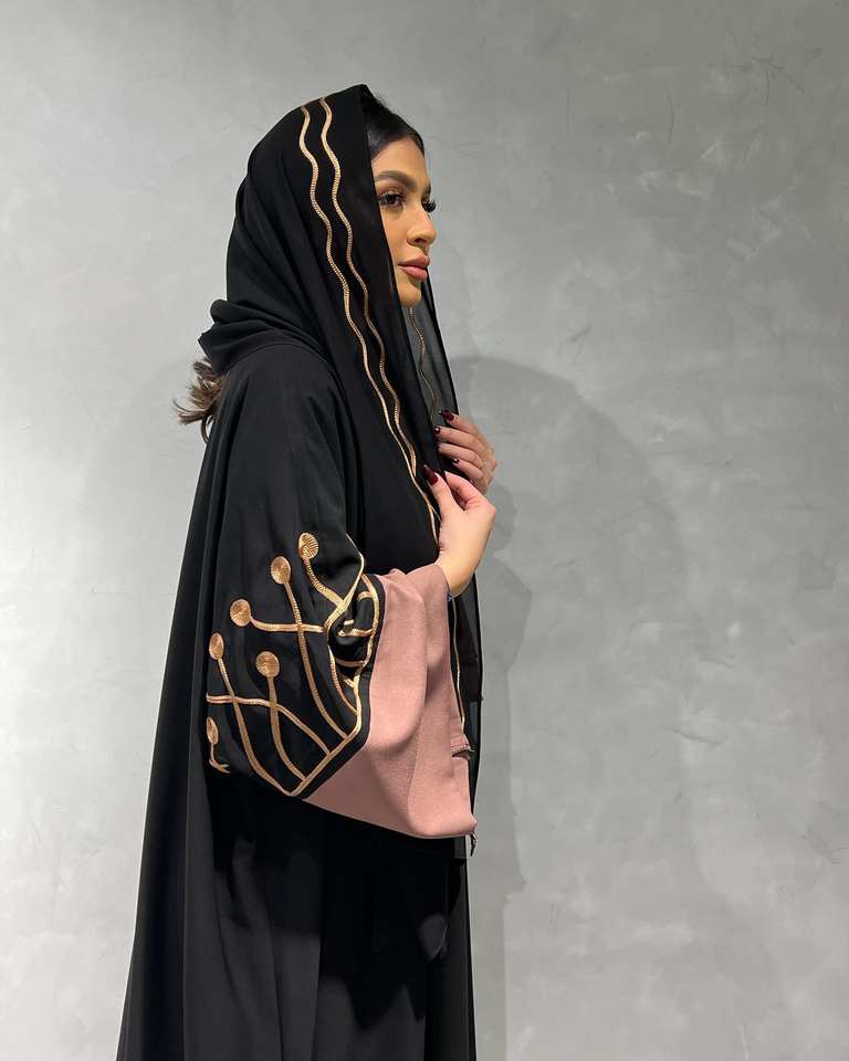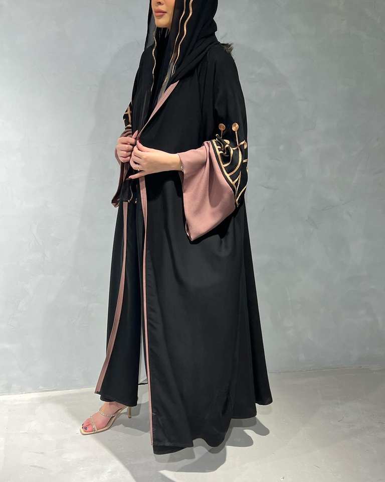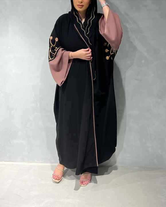 Handmade Black Silk Abaya with Beautiful White Embroidery Traditional Muslim Party Wear for Adults