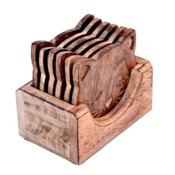 Wooden Coaster Set With Box Holder For Dining Room Decor Handmade Wooden Tea Coaster Set With Fine Polished Finish